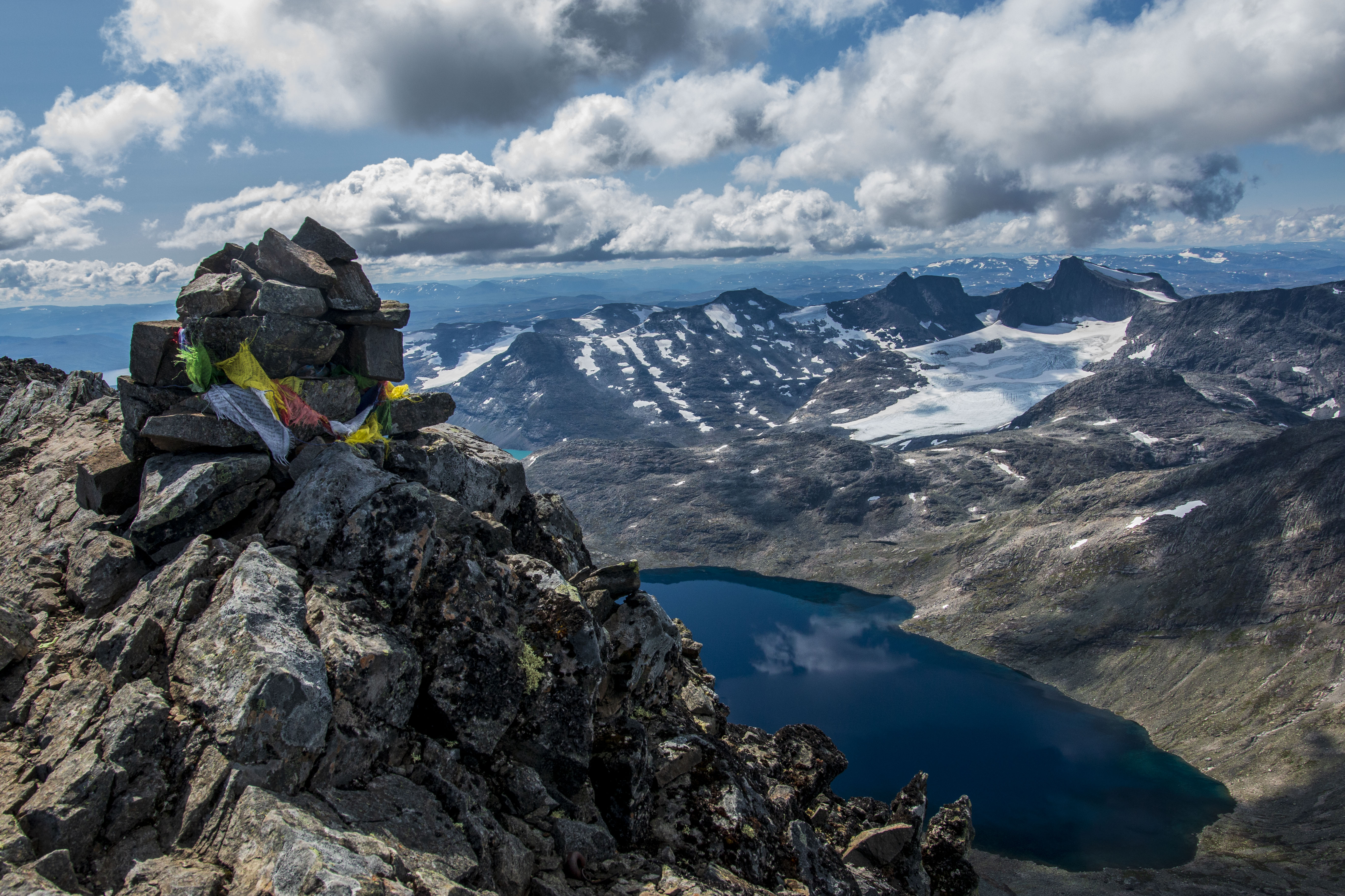 The hike offers views over the entire Jotunheimen, including Hurungane in the West, Uradalen in the North and South towards Kvitevatnet and Tyin. East of the ridge lies the largest ice field in this part of Jotunheimen. It consists of three glaciers; Uransbreen, Mjølkedalsbreen and Skogadalsbreen. Together, the three glaciers cover more than 7 square km.