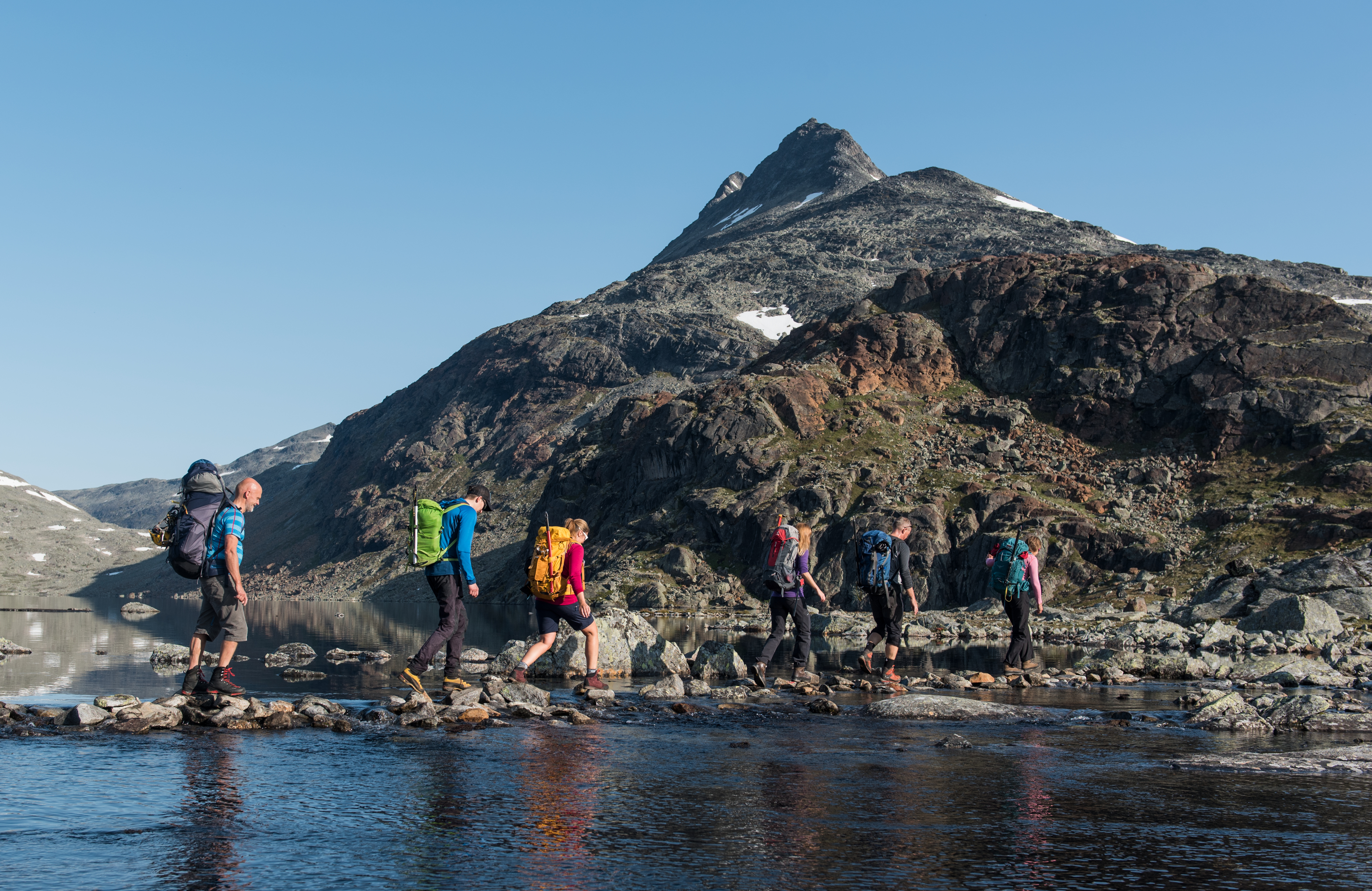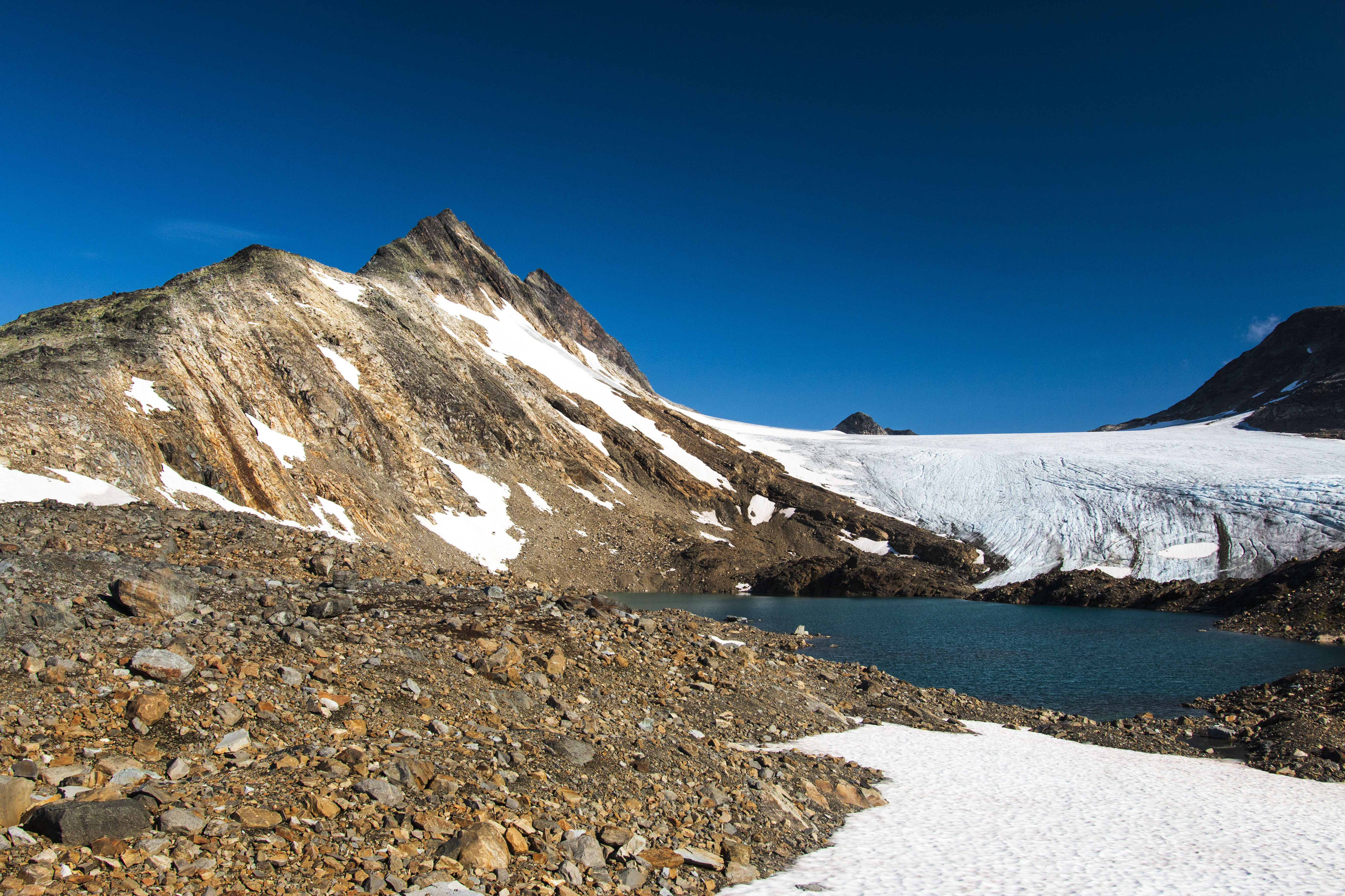 The iconic Uranostind lies at 2,157 m.a.s.l. This demanding 10-11 hour hike is great for experienced hikers. The hike will take you past Urdadalsvannet on the way to Koldedalen. Once you reach the Glacier there will be a short change of equipment before the hike continues to Uraknatten and the climb to Uranostind. The trek takes you over crevasses, and you will do some easy climbing and then crawl out on the top ridge and admire the spectacular view from the summit. The weather at high altitudes in Norway can change quickly, and snowstorms can happen every month of the summer. The hike is long, but the spectacular view at the summit is well worth the trip.