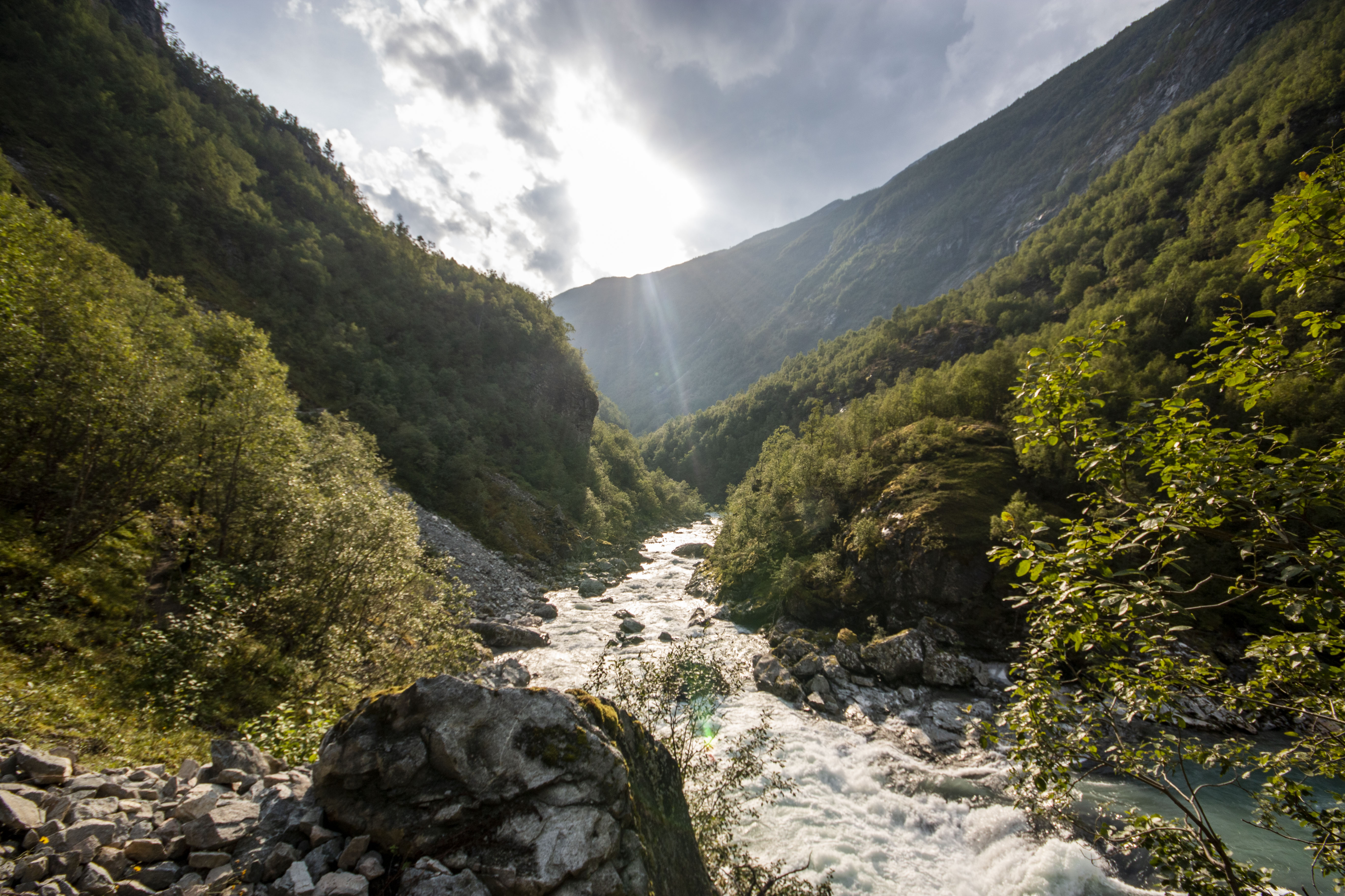 Scenic hike towards the foot of fabled waterfall in magical Utladalen.