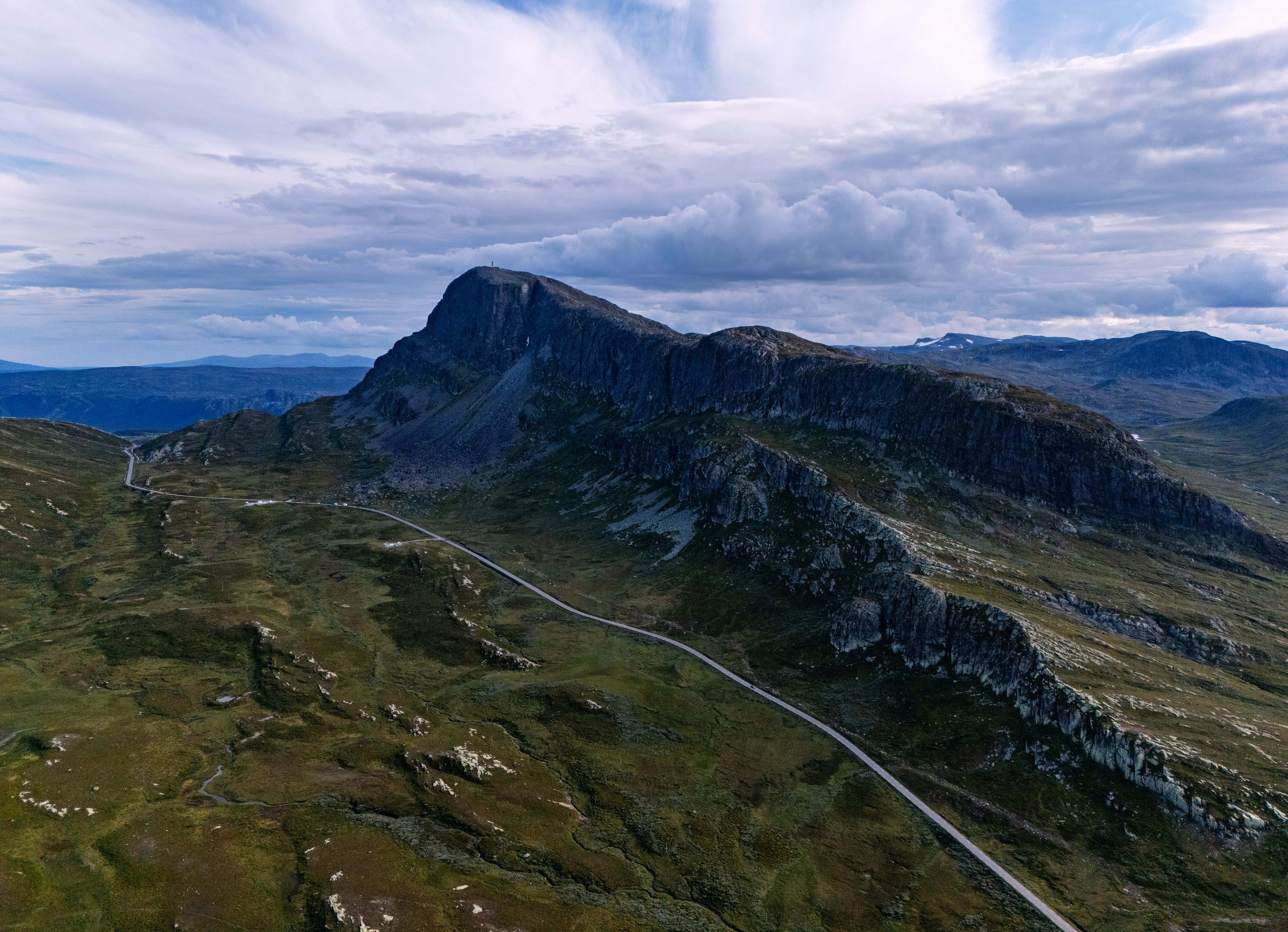 Valdresflye is a high-altitude mountain plateau in Innlandet County, Norway, traversed by the scenic Fv51 road (49 km long). It peaks at 1,389 meters (4,557 ft) above sea level and is part of the National Tourist Routes, offering panoramic views of Jotunheimen National Park.