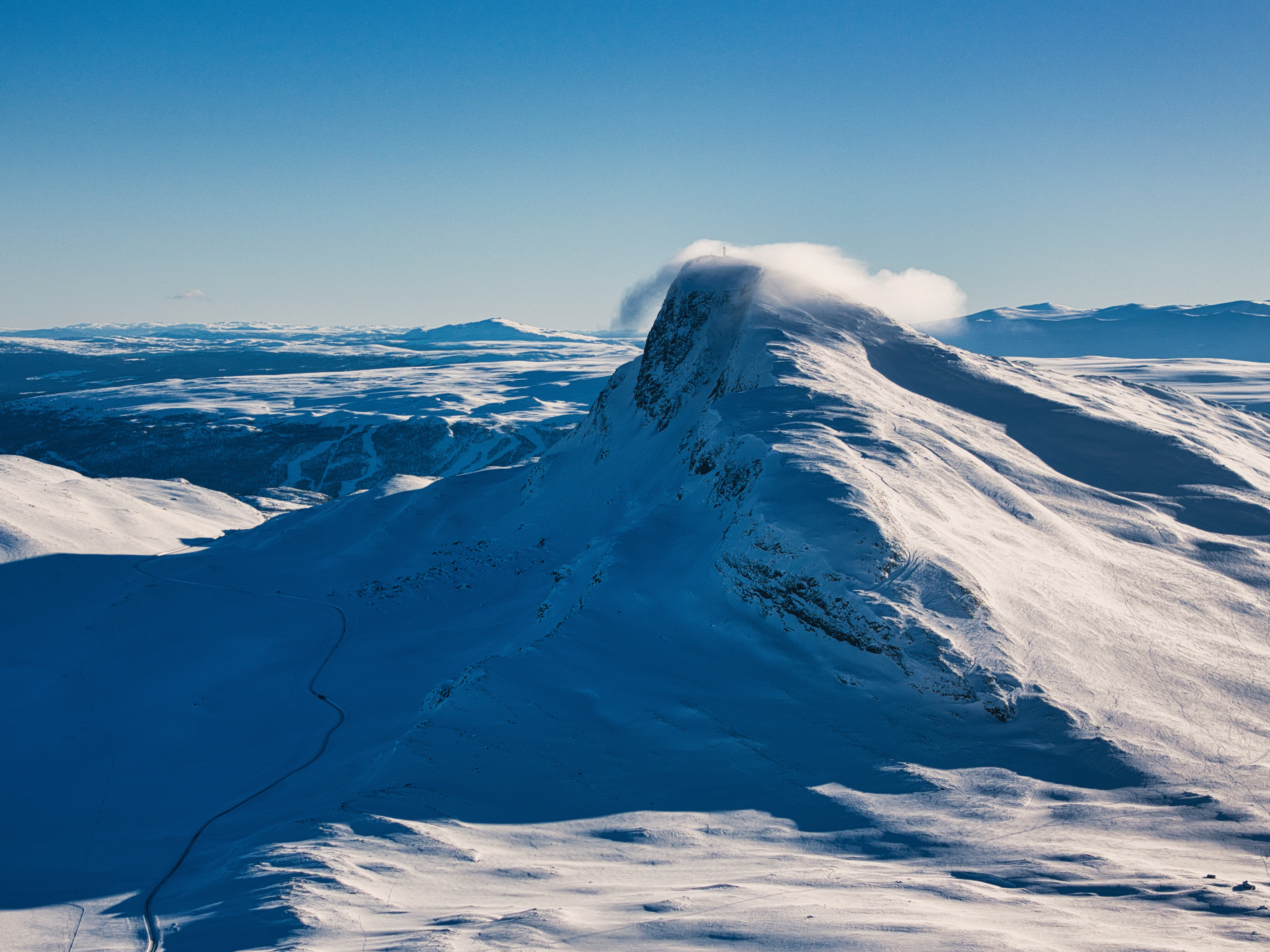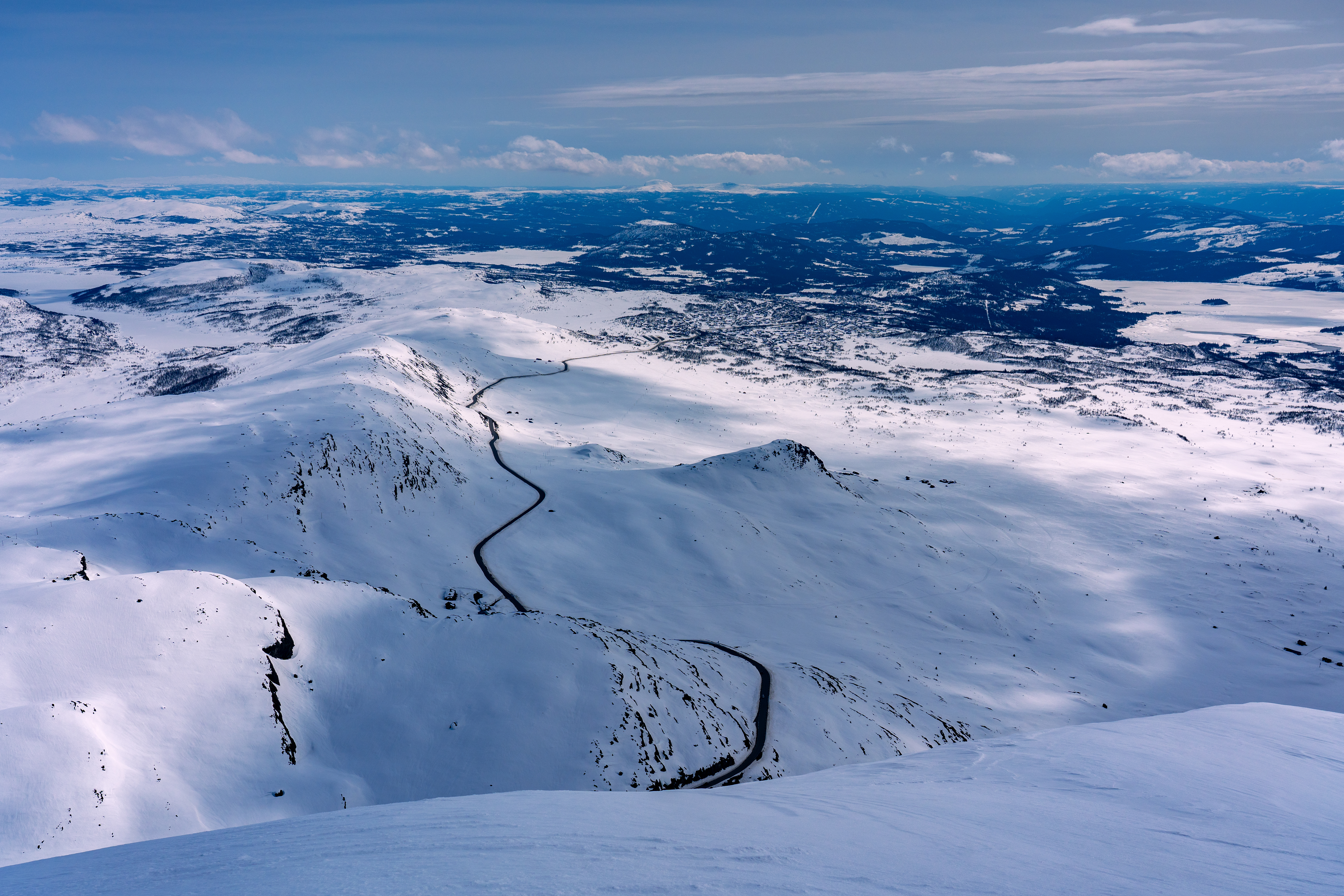 The highest point of the road is 1,389 meters (4,557 feet) above sea level, making it one of Norway's highest mountain roads. It is usually open from late May to early November, as it closes during winter due to heavy snow.